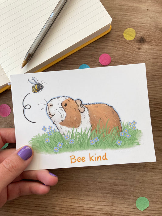Bee Kind | Cute Guinea Pig A6 Post Card | Guinea Pig Gift
