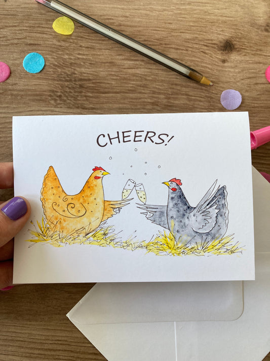 Cheers Chicken | Cute Hen Celebration Greeting Card | Hen Party Celebration