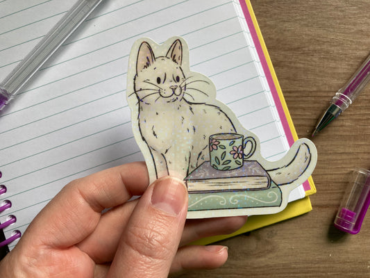 Coffee Cat | Cute Holographic Vinyl Cat Sticker