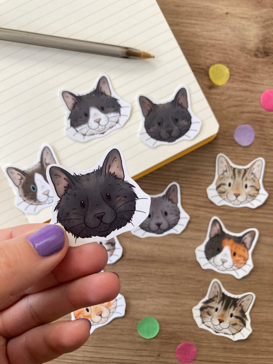 Cat Faces Stickers | Set Of 10 Cat Stickers | Cat Gift