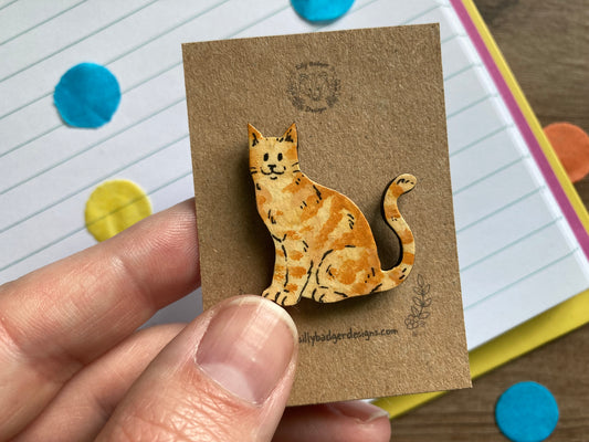 Oscar | Ginger Cat Pin Badge | Hand Painted Wooden Cat Pin Badge Accessory