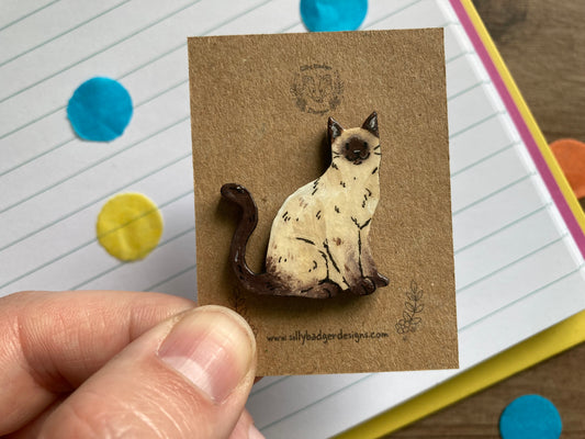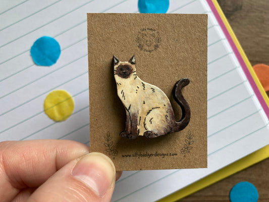 Poppy | Seal Point Cat Pin Badge | Hand Painted Wooden Cat Badge Accessory