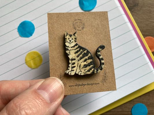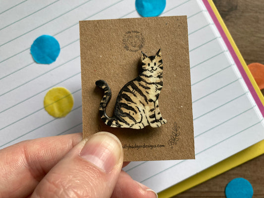 Rosie | Tabby Cat Pin Badge | Hand Painted Wooden Cat Pin Badge Accessory