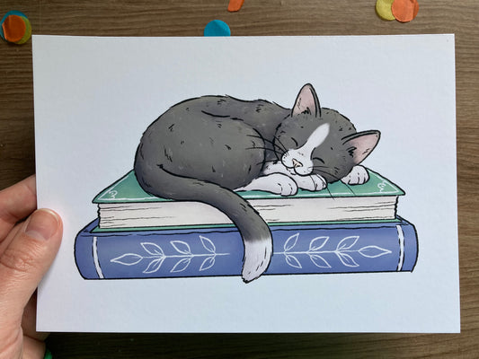 Book Lover | Cute Cat Art Print