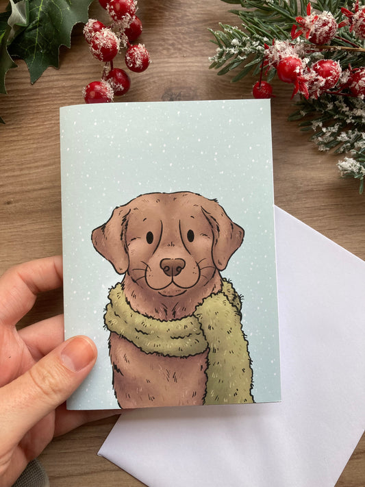 Winter Labrador | Cute Labrador Greeting Card | Chocolate Labrador Christmas Card