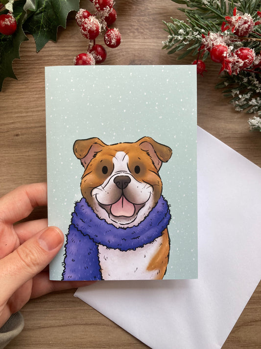 Winter Bulldog | Cute Bulldog Greeting card | Bulldog Christmas Card