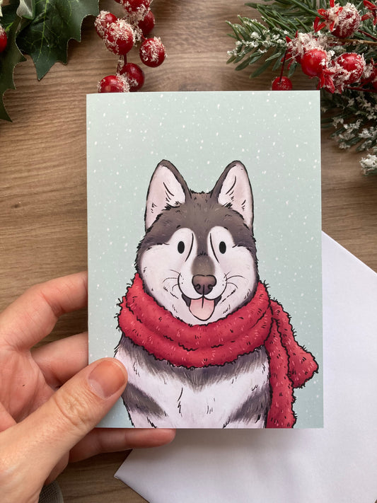 Winter Husky | Cute Husky Dog Greeting Card | Husky Christmas Card