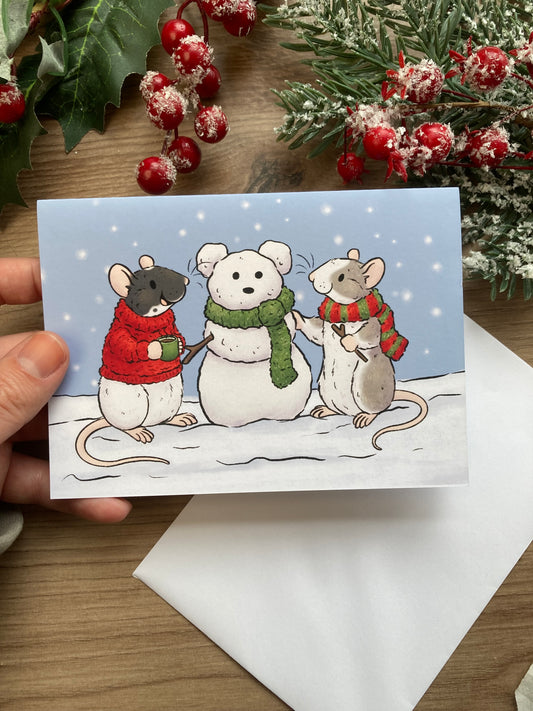 The season to snuggle fancy rat A6 Christmas card, cute pet rat blank greeting card, gift for rat lovers