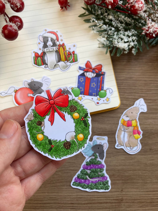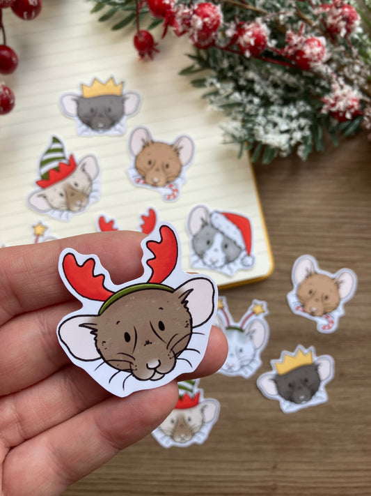 Christmas Rat Stickers | Pack Of 6 Pet Rat Stickers | Fun Rat Christmas Gift
