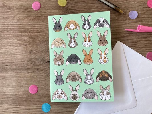 Bunny Faces | Cute Rabbit Blank Greeting Card | Bunny Gift