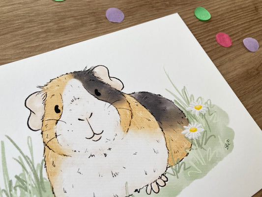 Daisy Guinea Pig | Cute Guinea Pig Art Print | Guinea Pig Artwork