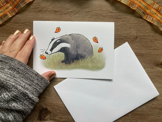 Autumn Badger Greeting Card | Cute Badger A6 Greeting Card