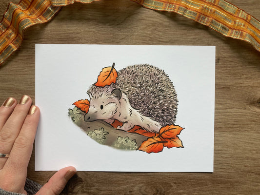 Autumn Hedgehog Artwork | Cute Autumn Hedgehog Art Print
