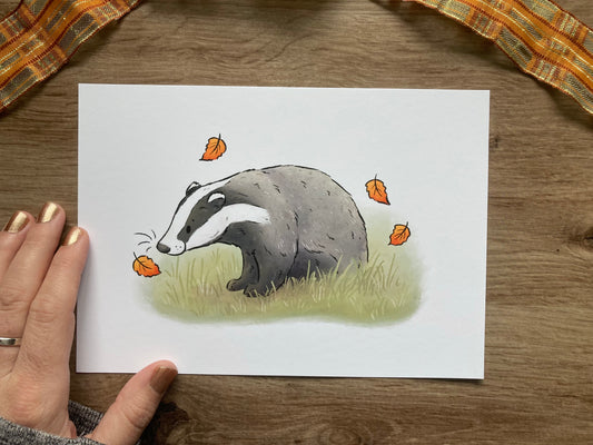 Autumn Badger Artwork | Happy Autumn Badger Art Print