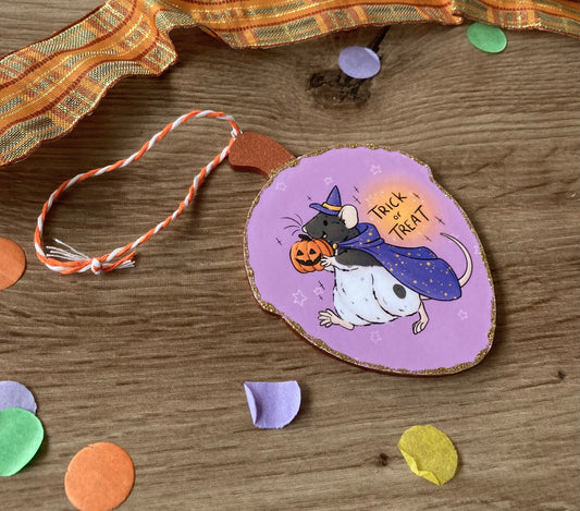 Trick Or Treat Ratty | Cute Rat Halloween Decoration | Pet Rat Wooden Acorn Halloween Ornament