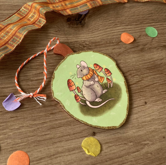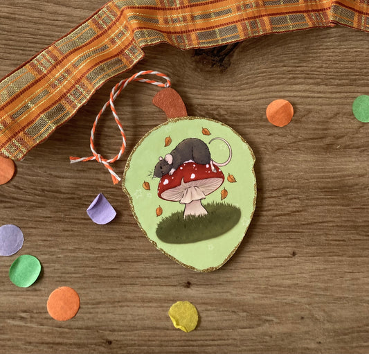 Toadstool Ratty | Cute Rat Autumn Decoration | Pet Rat Wooden Acorn Autumn Ornament
