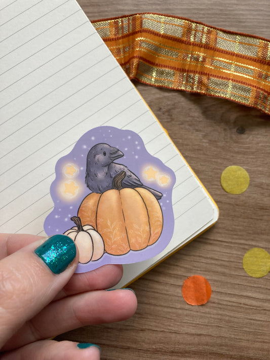 Pumpkin Crow | Cute Autumn Spooky Crow Vinyl Sticker