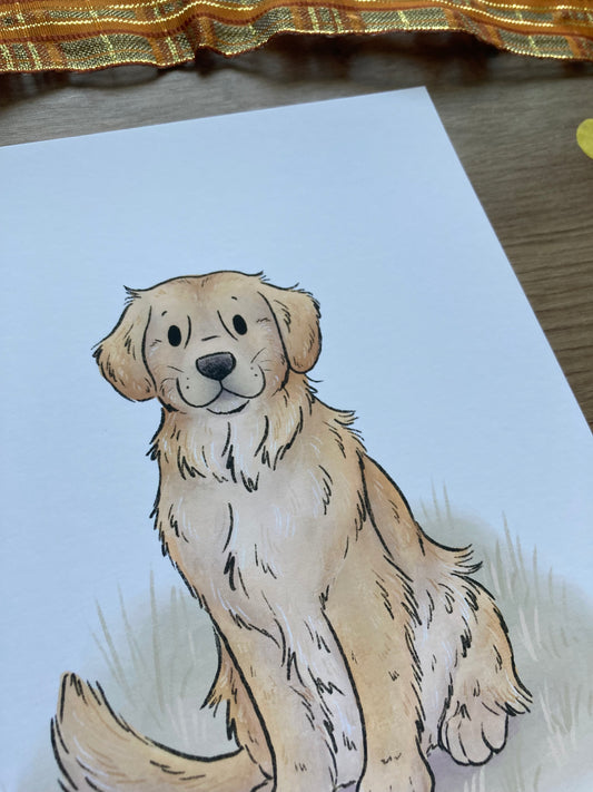 Autumn golden retriever | Cute Dog Art Print | Pup Artwork
