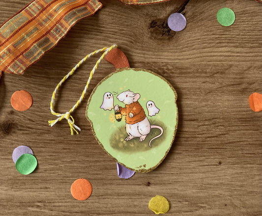 Spooky Rat | Cute Rat Autumn Decoration | Pet Rat Wooden Acorn Halloween Ornament