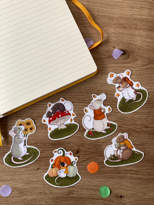 Autumn Ratties Sticker Pack | Pack Of 6 Cute Rat Stickers | Fun Glossy Paper Rat Stickers