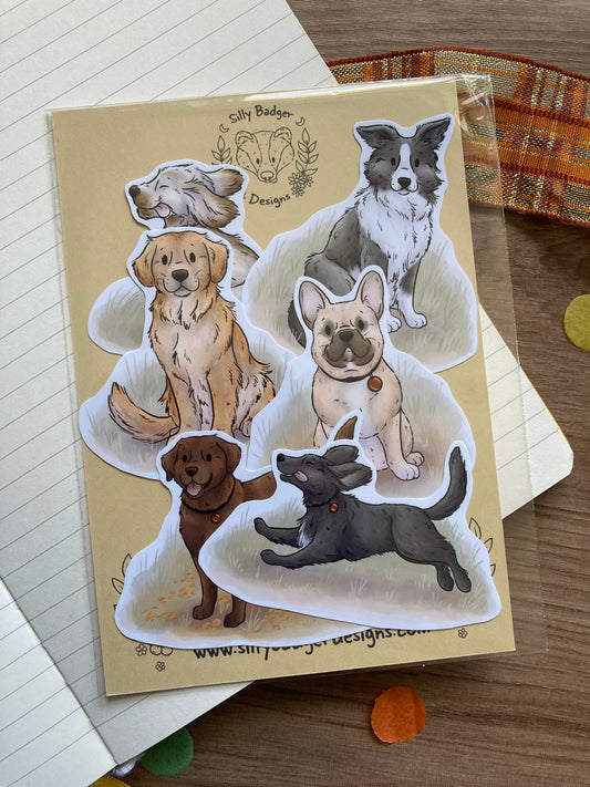 Autumn Walkies | Cute Dog Sticker Pack | Pack of 6 Glossy Paper Stickers