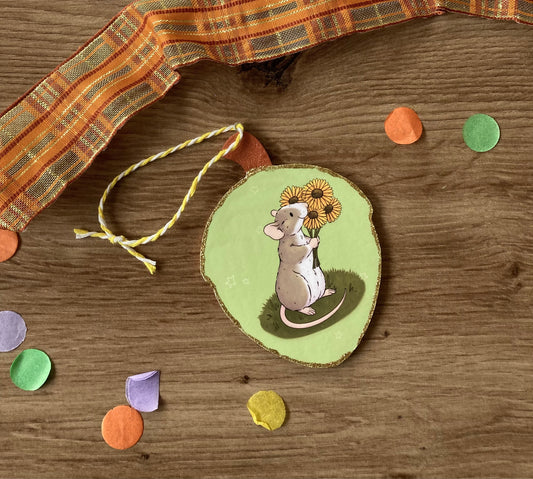 Sunshine Rat | Cute Rat With Sunflowers Autumn Decoration | Pet Rat Acorn Autumn Ornament