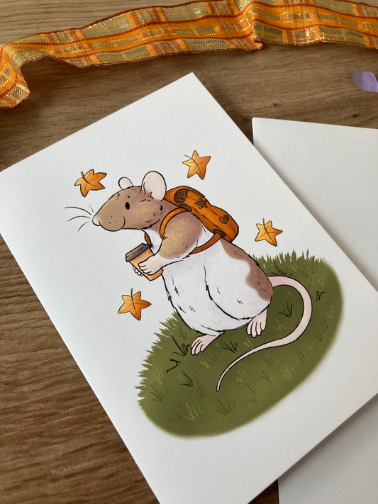 Autumn Adventures | Cute Autumn Rat Blank Greeting Card