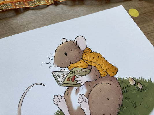 Nature reading rat art print | Cute Rat Art Print | Autumn Rat Artwork