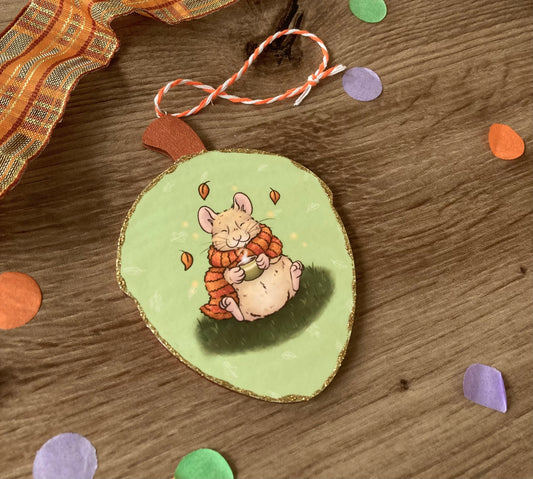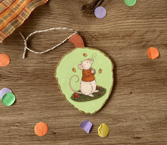 Ratty Adventures | Cute Rat Autumn Decoration | Pet Rat Wooden Acorn Ornament