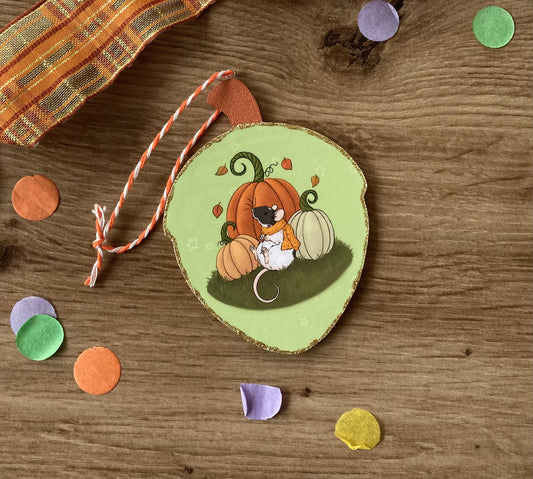 Pumpkin Patch Rat | Cute Rat Autumn Decoration | Pet Rat Wooden Acorn Ornament