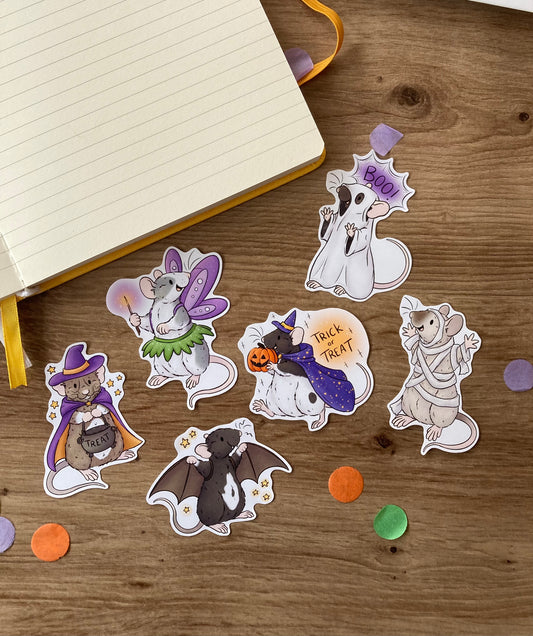 Trick Or Treat Rat Stickers | Cute Spooky Pet Rat Stickers | Pack Of 6 Fun Rat Stickers