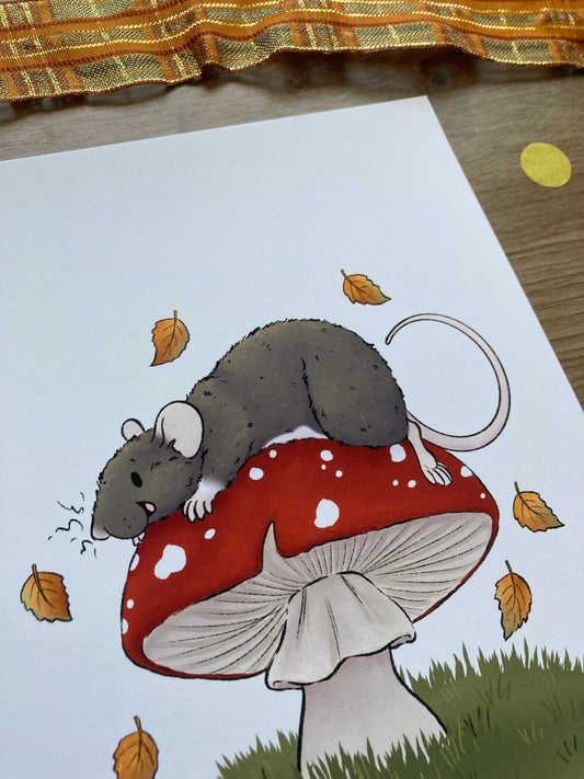 Toadstool Hugs Cute Rat Art Print | Cute Rat Art Print | Autumn Rat Artwork