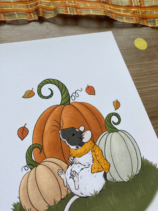 Pumpkin Patch rat art print | Cute Rat Art Print | Autumn Rat Artwork