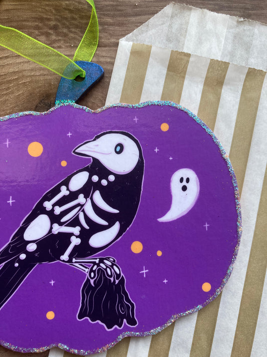 Trick The Crow Spooky Gang Pumpkin Halloween Decoration - Handmade Pumpkin Halloween Ornament - Cute Spooky Crow Art