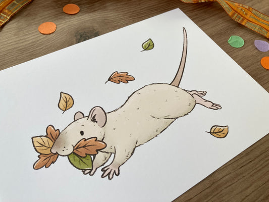 Autumn Rat Art Print | Rat Gift | Cute Rat Artwork
