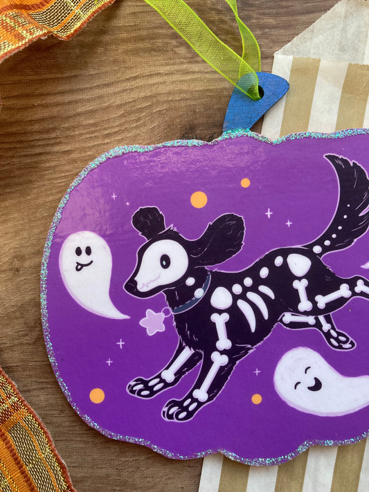 Shadow The Dog - Spooky Gang Halloween Hanging Decoration - Wooden Pumpkin Hanging Ornament - Handmade Halloween Dog Ornament