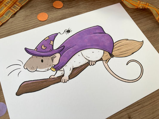 Amelia The Witchy Rat | Cute Rat Art Print | Halloween Rat Art