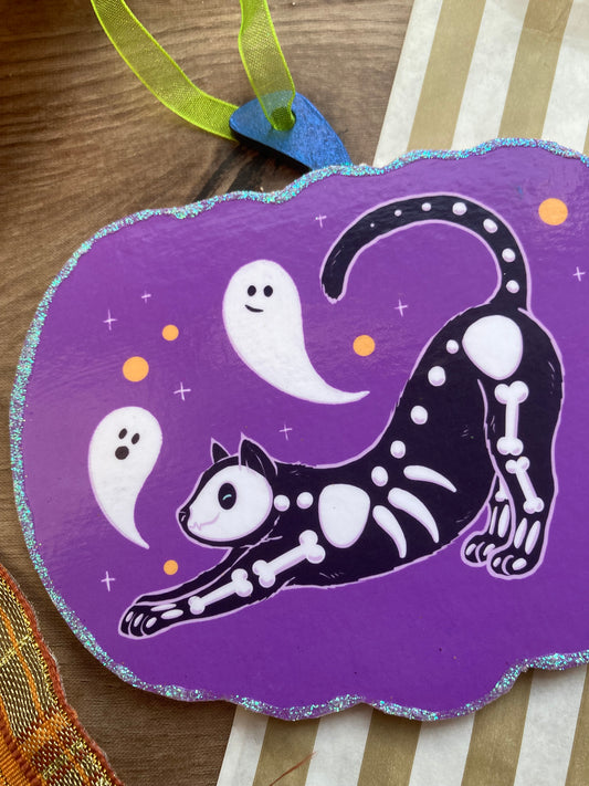 Fang The Cat Spooky Gang Cute Pumpkin Halloween Decoration - Handmade Halloween Ornament - Spooky Cat Decoration
