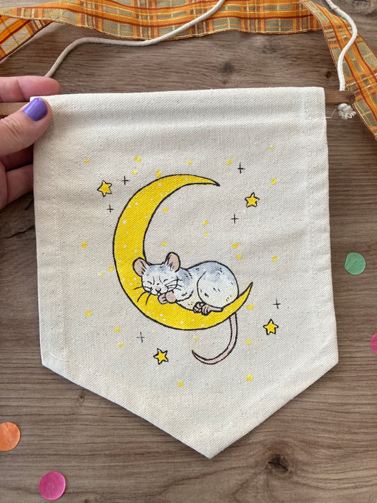 Moon Rat | Original Painting | Hand painted Rat Banner | OOAK