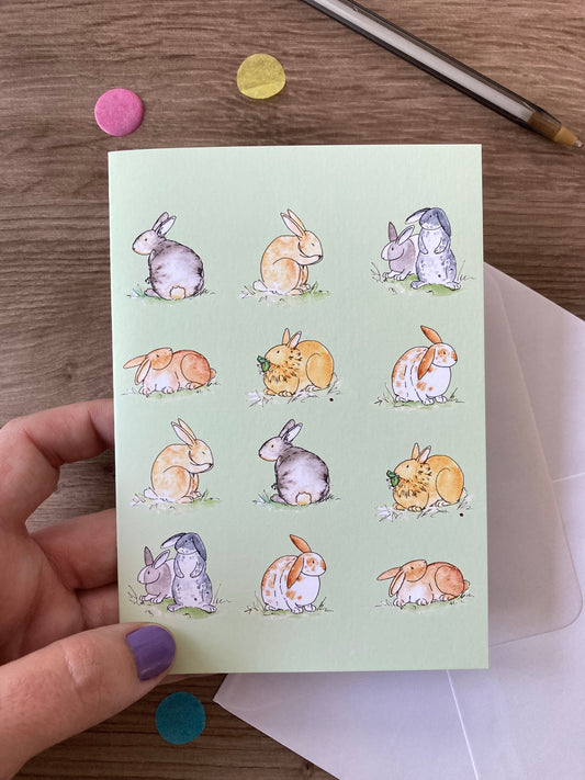 Bunny Faces | Cute Rabbit Blank Greeting Card | Bunny Gift