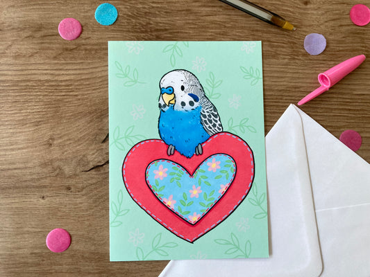 Budgie Heart | Blue Budgie Blank Greeting Card | Blue Budgie Gift