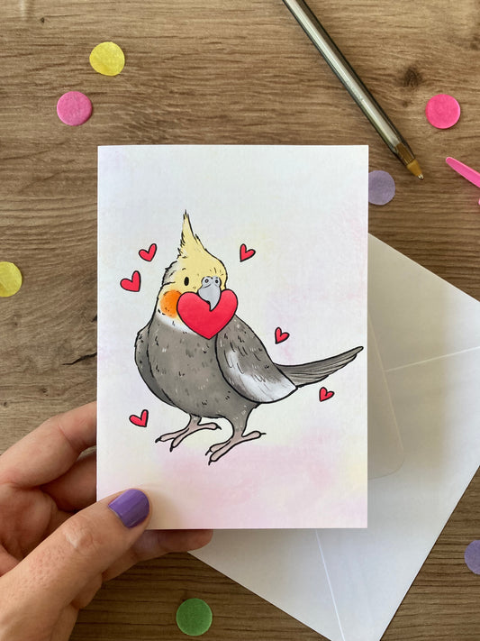 Cockatiel Flower Heart | Cute Cockatiel Blank Greeting Card | Cockatiel Gift