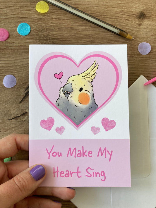 You Make My Heart Sing | Cute Cockatiel Blank Greeting Card | Cockatiel Love Card