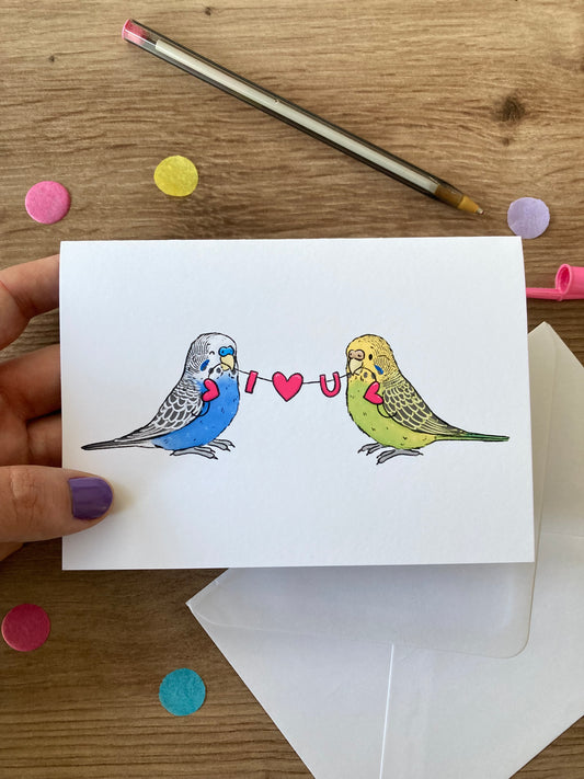 I Love You Budgies | Cute Budgie Blank Greeting Card | Budgie Couple Greeting Card