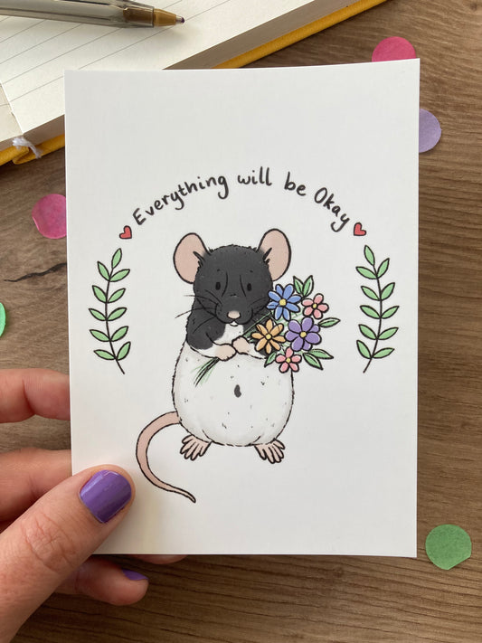Everything Will Be Okay | Cute A6 Rat Post Card | Rat Gift