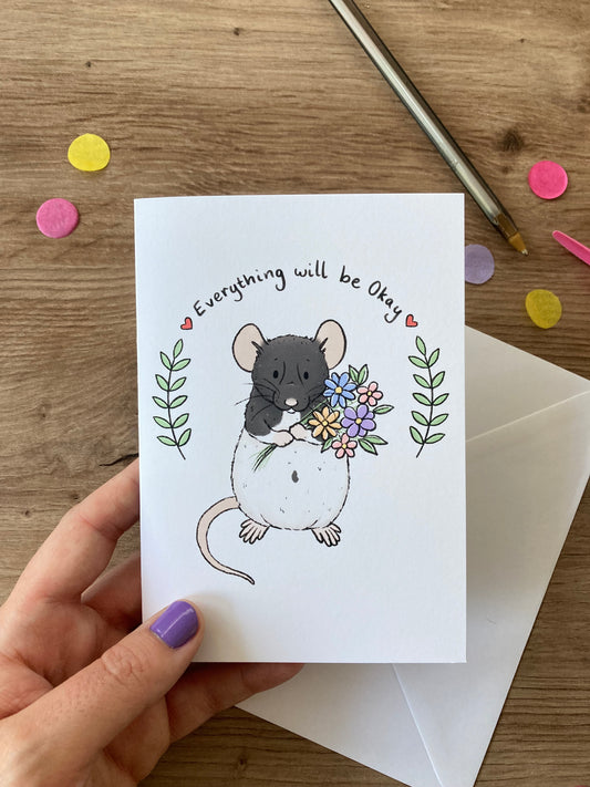 Everything Will Be Okay | Cute Rat Blank Greeting Card | Hooded Rat Gift