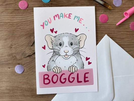 You Make Me Boggle | Cute Fancy Rat Greeting Card | Pet Rat Valentine