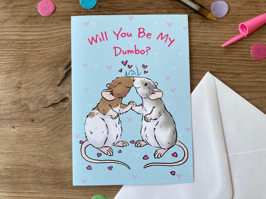 Will You Be My Dumbo | Cute Rat Couple A6 Greeting Card