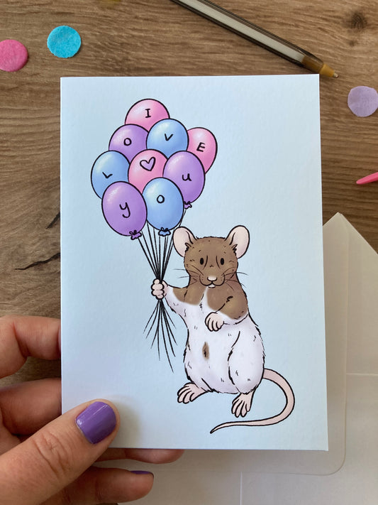 I Love You Balloon Rat | Cute Rat Greeting Card | Fancy Rat Love Blank Greeting Card