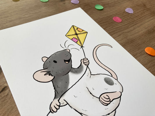 Summer Breeze | Playful Rat Art Print | Summer Rat Artwork